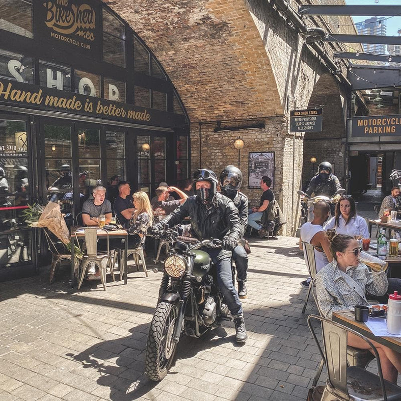 Set under 4 huge Victorian railway arches and the building next door, the Bike Shed is a destination dedicated to moto culture & moto people, open to all, whether they arrive on foot or on a motorcycle. Anyone can brave the ride down our infamous cafe driveway to our secure motorcycle parking.